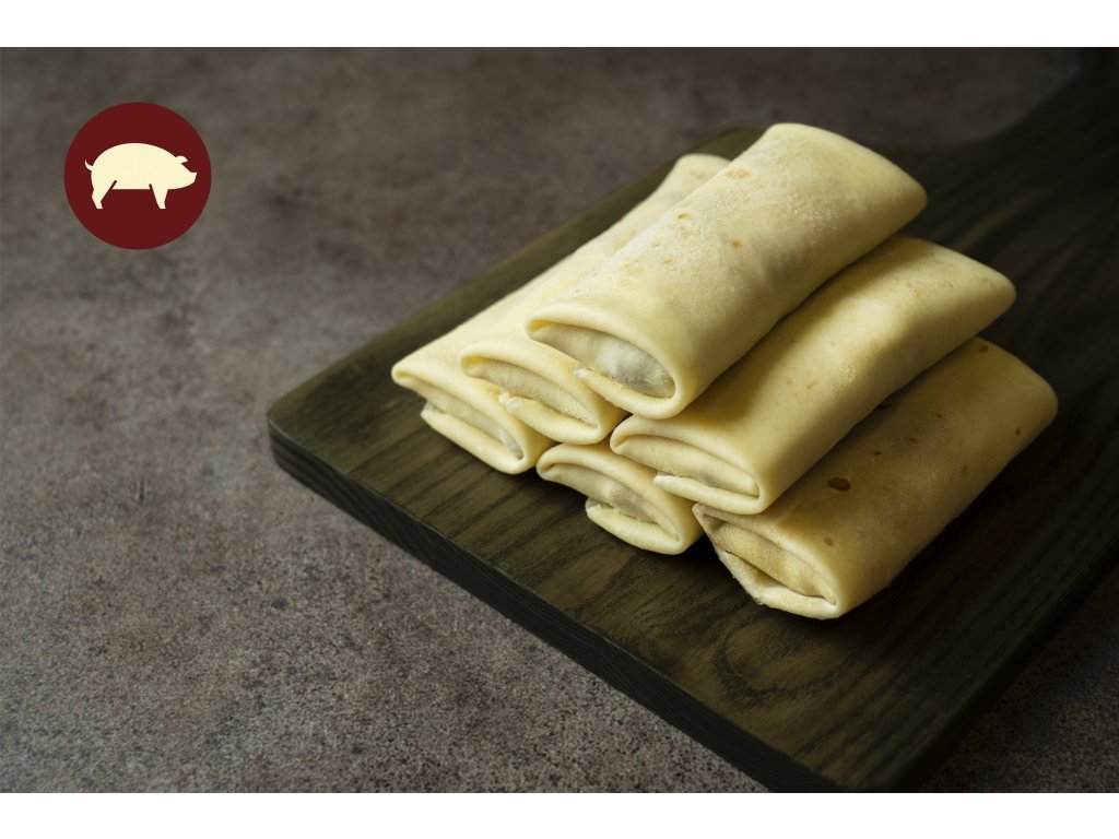 Palačinky plněné šťavnatým vepřovým masem. Jednoduché syté jídlo.