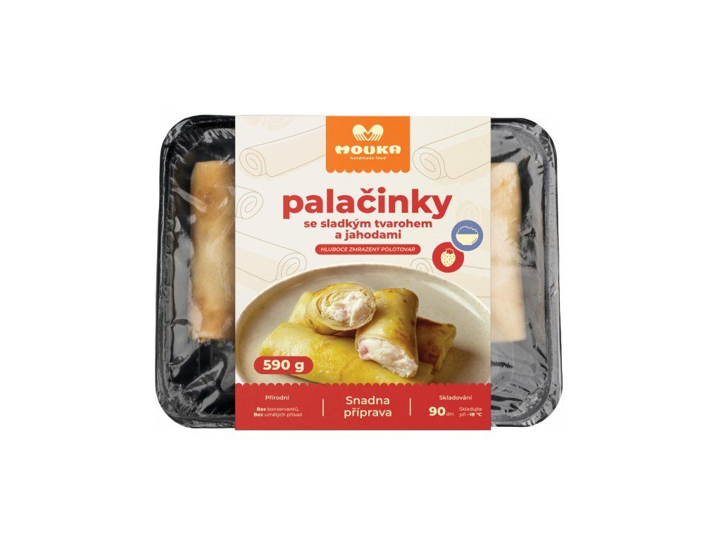 Lehké palačinky s tvarohovo-jahodovou náplní. Tvaroh je jemný a krémový, jahody dodávají přirozenou sladkost a svěžest. Po ohřevu je náplň krásně měkká a příjemně sladká. Ideální varianta na snídani nebo sladkou svačinu.