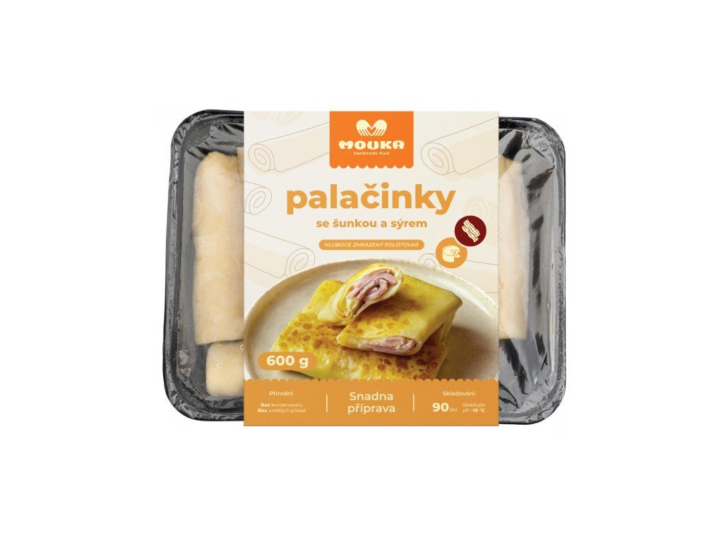 Syté palačinky se šunkou a rozpuštěným sýrem. Sýr dodává krémovost a jemnou vláčnost, šunka přidává výraznější chuť. Po ohřevu je náplň krásně měkká a celé jídlo působí velmi chutně. Perfektní rychlá svačina.